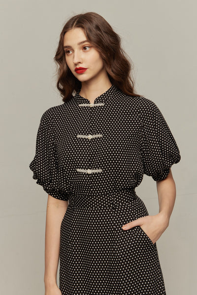 《カトラリーと書かれた箱》パフスリーブドットトップス