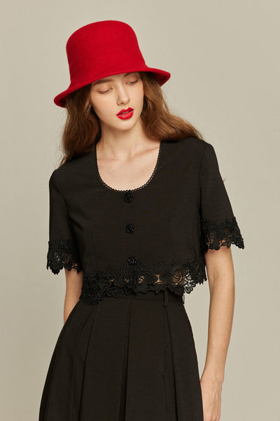 《枕の下に隠したラッキーチャーム》クロップドジャケット-Black