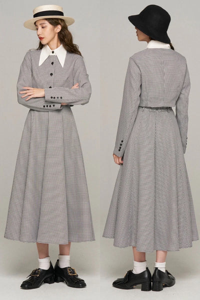 《つい一口食べちゃいました》ハイウエストサーキュラースカート-Houndstooth check