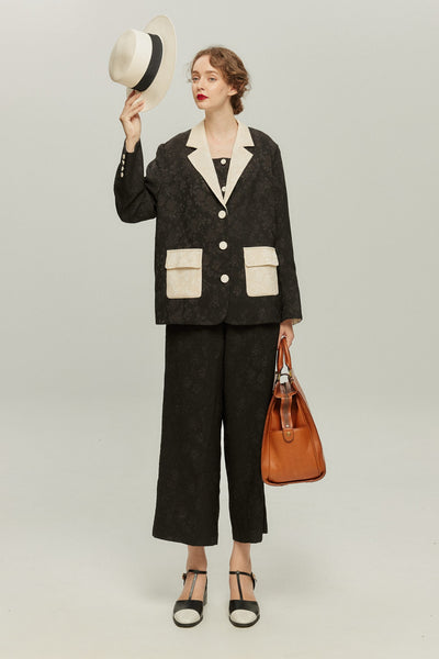 《数日分にしては荷物が多すぎる》バストパッド付きシノワズリクロップドトップス-Black