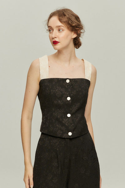 《ショーウィンドウの中の靴を見つめて》バイカラーストレップベスト-Black