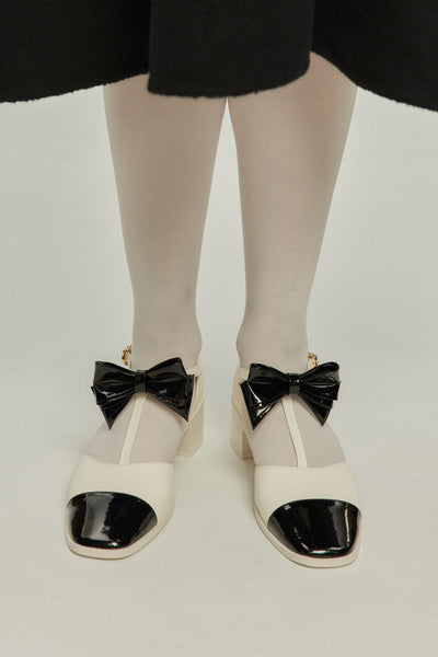 ティーバーメリージェーンパンプス-Renewal-Black Toe×White